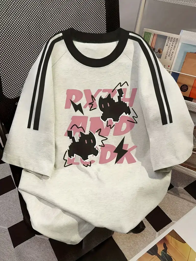 Damen-T-Shirt mit verspieltem Cartoon-Print und